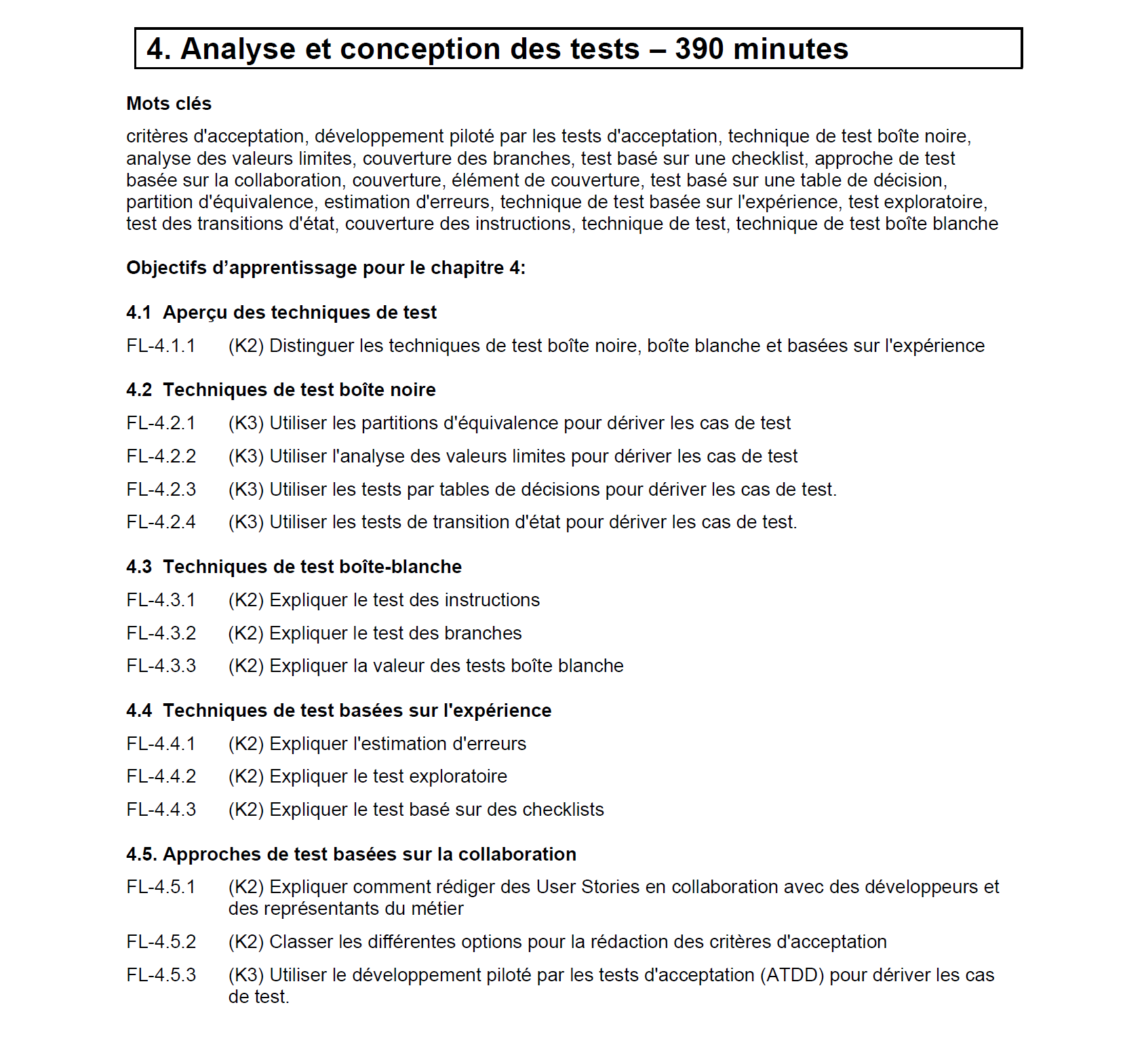 o Le candidat apprend à appliquer les techniques de test boîte noire, boîte blanche et les techniques de test basées sur l'expérience pour dériver des cas de test à partir de divers produits activités.