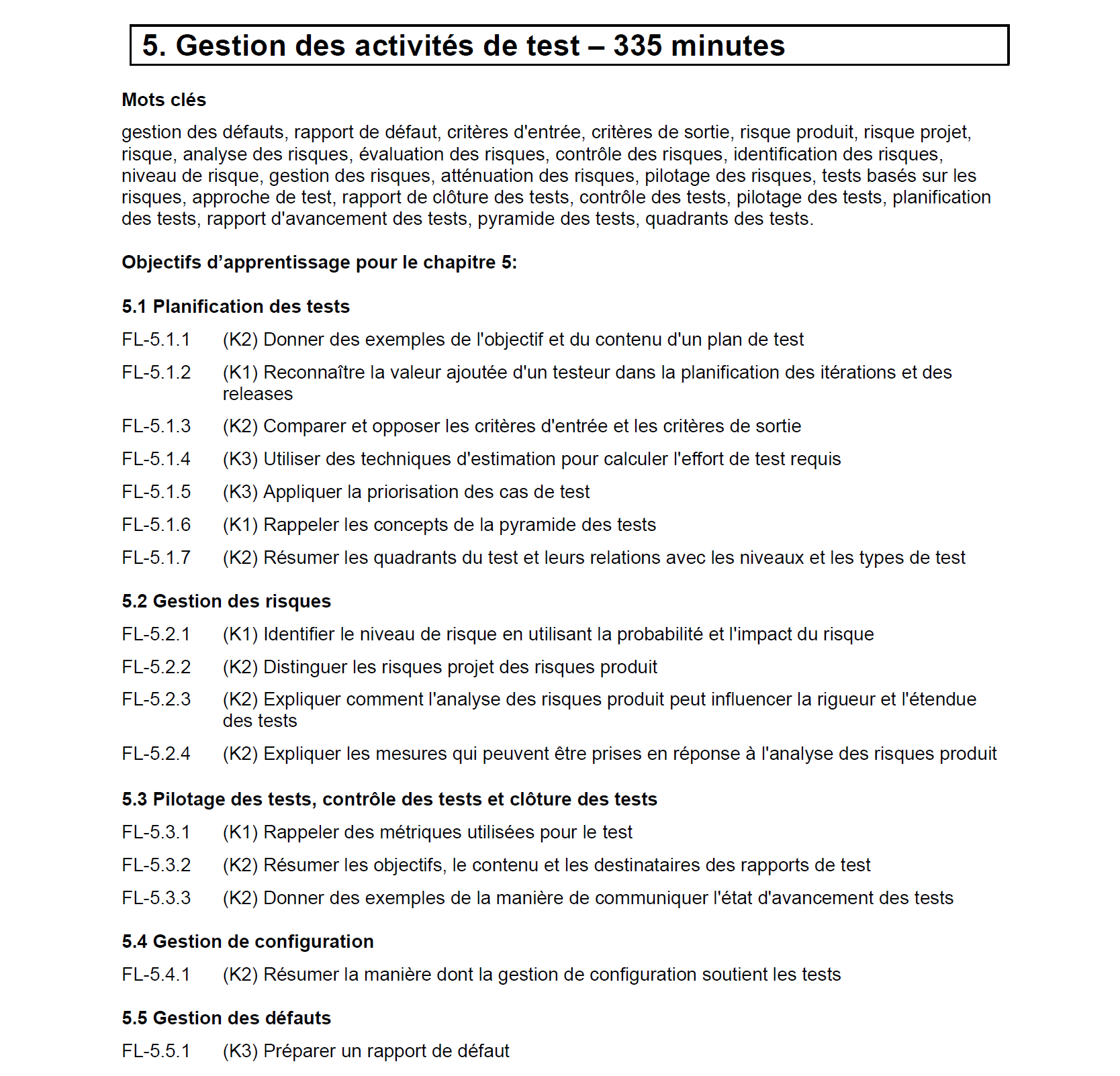 o Le candidat apprend à planifier les tests en général et à estimer l'effort de test.