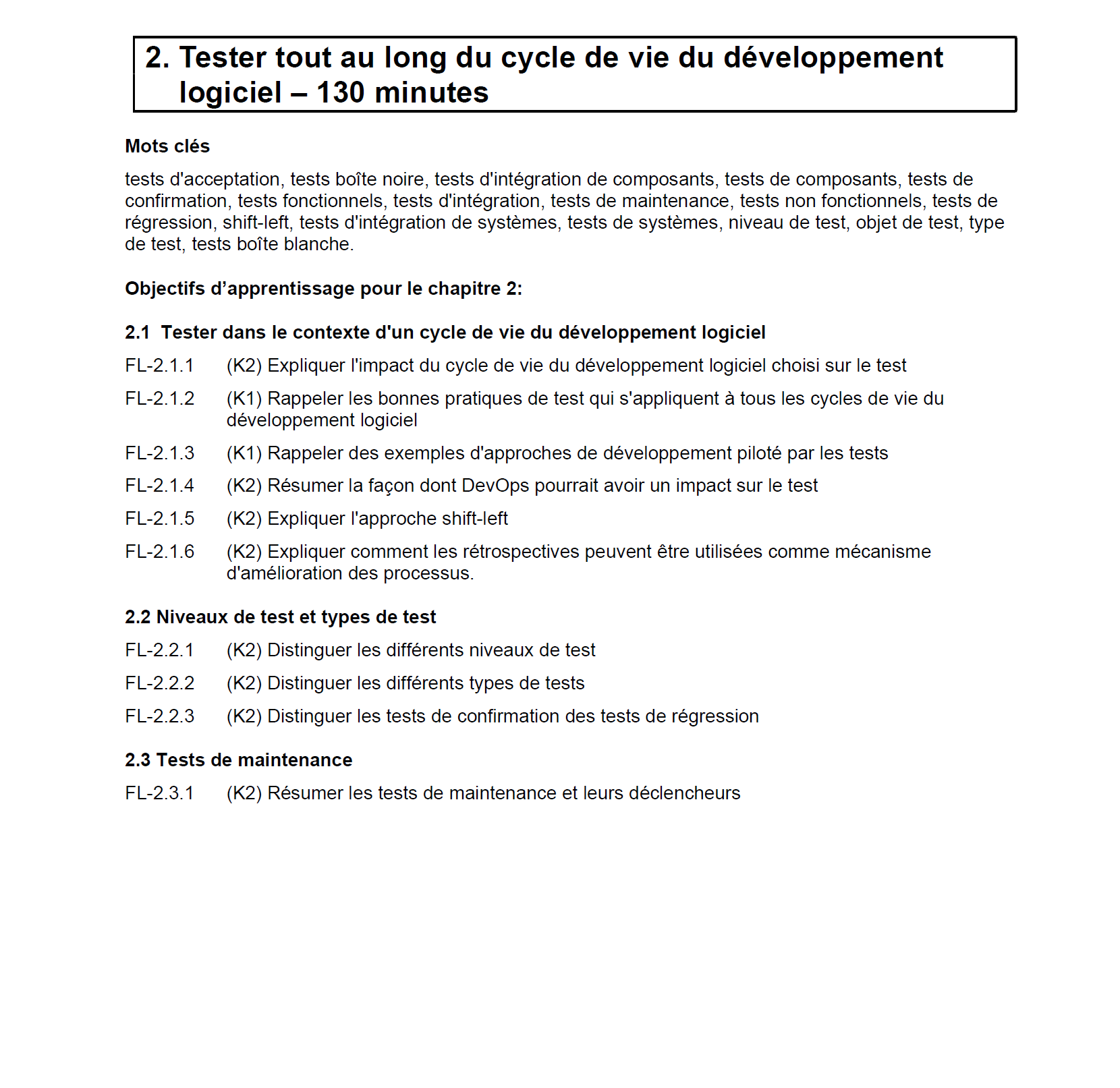 o Le candidat apprend les différents niveaux de test, les types de test et les tests de maintenance.